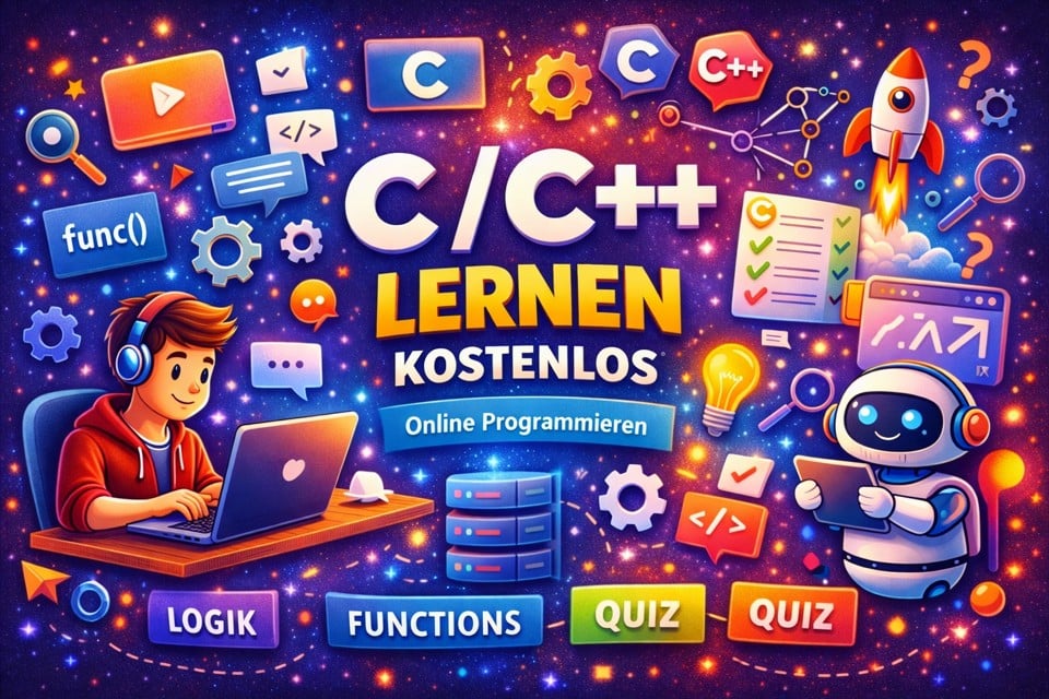 Tipp: Starten Sie mit den Grundlagen (Syntax, Datentypen, Kontrollstrukturen), gehen Sie dann zu Funktionen, Arrays, Pointern (C) und später zu OOP (C++: Klassen, Objekte, Vererbung). Übung ist der entscheidende Faktor – daher enthält die Liste auch reine Übungs- und Challenge-Plattformen.