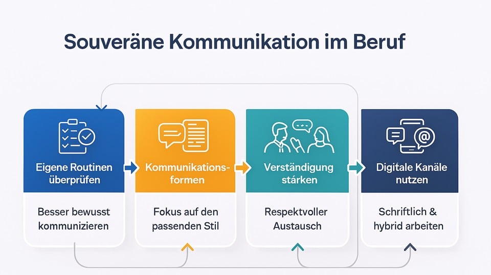 Genau deshalb lohnt sich ein Blick auf die Grundlagen der Kommunikation im Beruf, die Orientierung schaffen und Gespräche gleich wesentlich strukturierter gestalten. Wer bewusst kommuniziert, steigert nicht nur die eigene Wirkung, sondern erleichtert auch den Kollegen und Vorgesetzten den Umgang miteinander.
