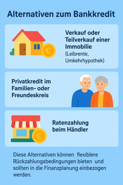 Falls ein klassischer Bankkredit nicht infrage kommt, stehen Senioren mehrere Möglichkeiten offen, um dennoch an zusätzliches Kapital zu gelangen: